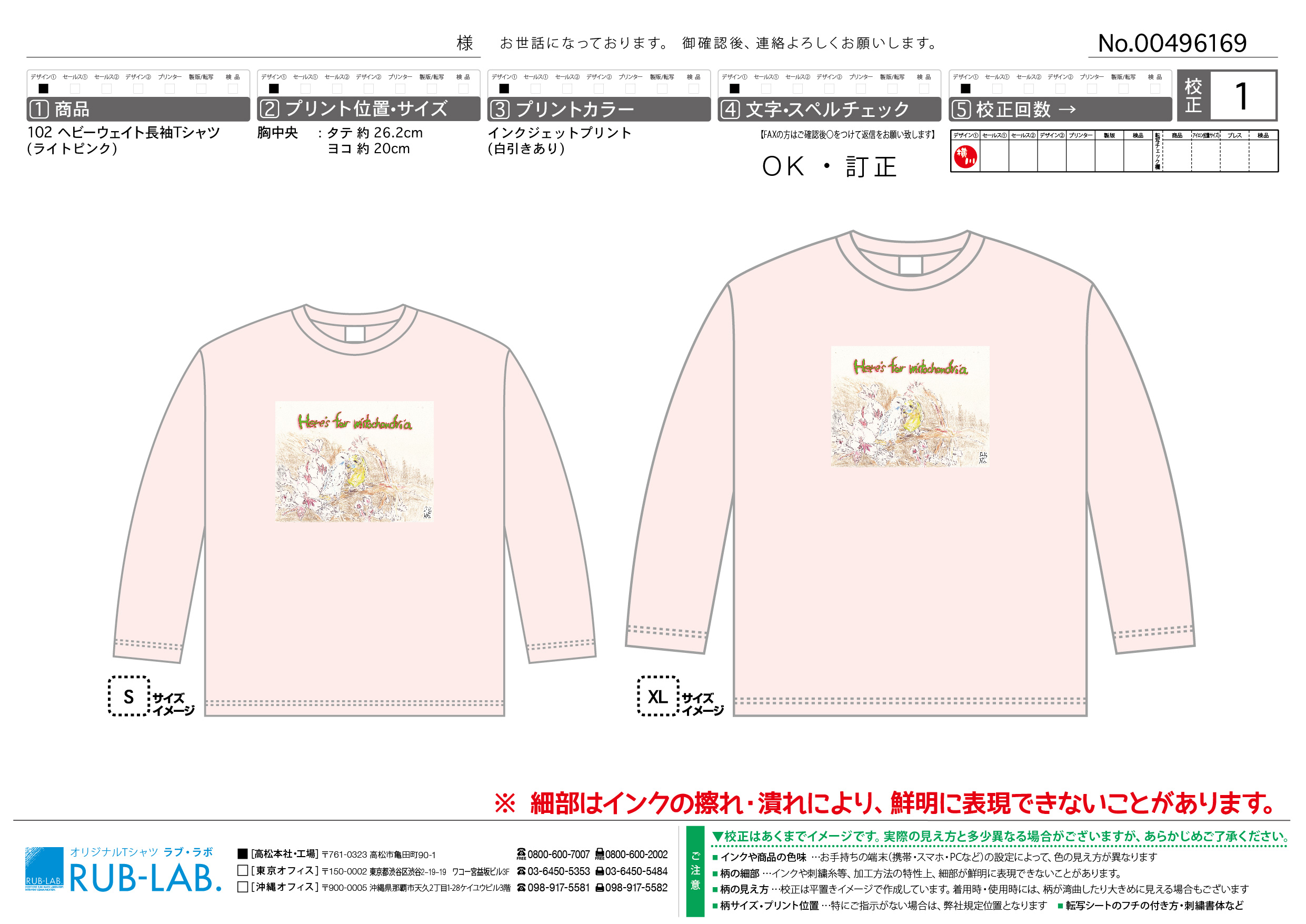 【長袖Tシャツピンク】 各3600円